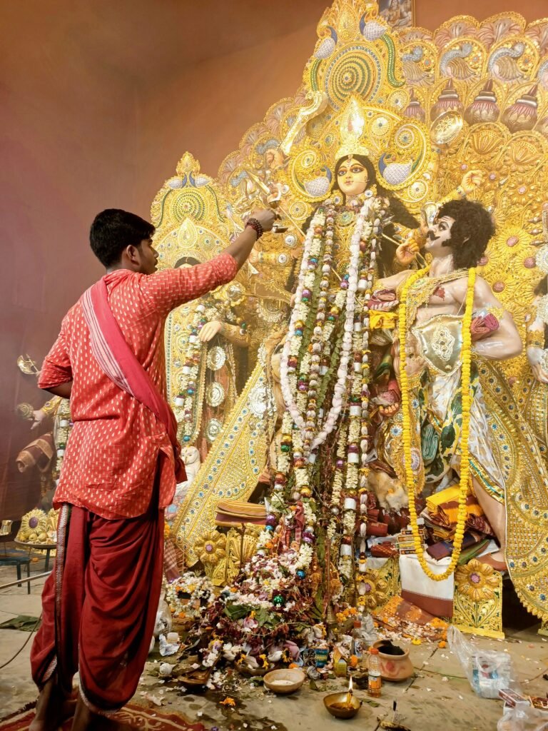 - फूलों की माला बनाकर देवी को अर्पित करें।